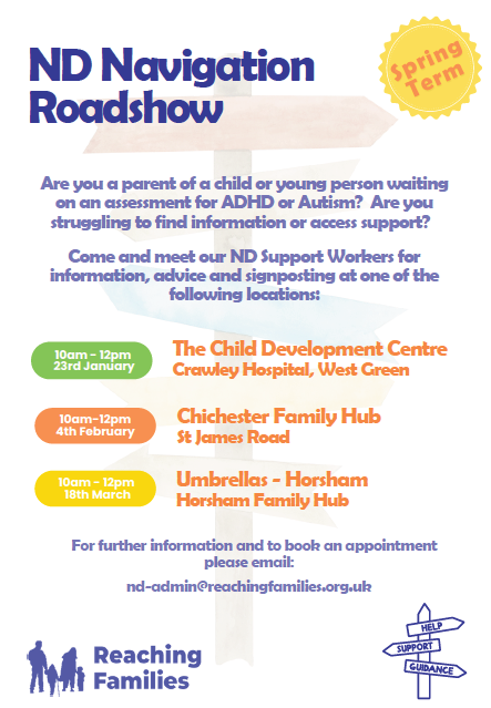 To book an appointment – please email ND-Admin@reachingfamilies.org.uk